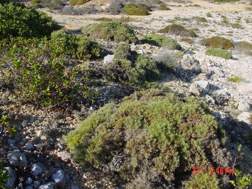 As basiphilous garrigues have enormous syntaxonomic and floristic diversity in the western Mediterranean, some degree of interpretation is needed. We follow the concept of Mucina et al. (2014) with several modifications. The core concept is that of chamaephyte- and nano- phanerophyte-dominated scrub on eroded or thin soils in substrata with alkaline reaction, either derived from limestone, dolomitic (rich in magnesium carbonate) or sometimes ultramafic rock, in thermo-mediterranean and meso-mediterranean belts. The vegetation corresponds to a large part of the class Rosmarinetea officinalis (in the sense of Rivas-Martínez et al., 1991, = Ononido-Rosmarinetea in Mucina et al.) and mostly to the widespread dry to sub-humid order Rosmarinetalia. Also the semi-arid limestone communities of the Murcia-Almerian province (order Anthyllidetalia terniflorae) are included. Gypsum communities (order Gipsophylletalia) are excluded (included in F6.7), but magnesium-prone ones are included (order Convolvuletalia boissieri). The equivalent habitats in west european calcareous mountains, mostly in supra and oro-mediterranean thermotypes, sometimes in sub-mediterranean temperate bioclimate are excluded and systematized in F6.6, F6.7 and F7.4. By the same reasoning all hedgehog heath (order Erinacetalia anthylis) is excluded and belongs to F7.4. The following syntaxa, in many cases ascribed to Rosmarinetea are thus excluded from F6.1a: Erysimo-Jurinetalia bocconei (F7.4b), Festuco-Ononidetalia striatae (F74.a). Also, not following Mucina et al., mountain garrigues of the following alliances are excluded: Polygalo-Genistion corsicae, Helianthemo-Aphyllantion monspeliensis (F6.6), Alyssion bertolonii (F7.4a), Artemisio albae-Saturejion montanae (F7.4a), Lavandulo latifoliae-Genistion (Echinospartion) boissieri (F6.6), Siderito incanae-Salvio lavandulifoliae (F6.6). However Cisto eriocephali-Ericion multiflorae is included to stand for an Italo- Thyrrenean irradiation of the east-mediterranean Cisto-Micromerietea class or otherwise considered in Rosmarinetea (West Mediterranean). Garrigues in limestone sea-cliffs (order Helichrysetalia italici) are excluded and classifiable in either F7.1-2 (west Mediterranean coastal garrigues) or B3.1-3b (Mediterranean and Black Sea rocky shores).