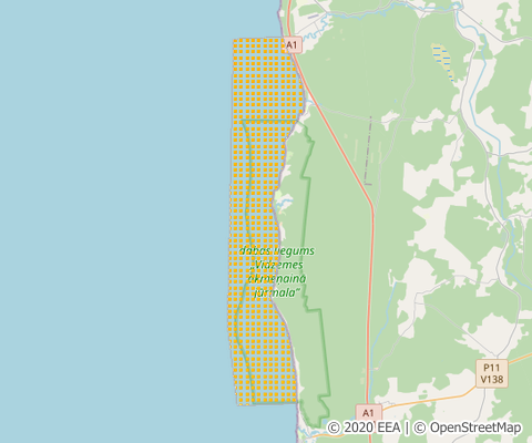 | LV09 | Aizsargajama juras teritorija | Protected Marine Area | Designation types used with the intention to protect fauna, flora, habitats and landscapes (the latter as far as relevant for fauna, flora and for habitat protection) (Code A) | 2010 |