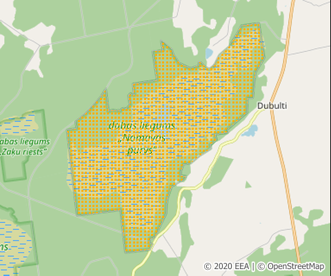 | LV05 | Dabas liegums | Nature Reserve | Designation types used with the intention to protect fauna, flora, habitats and landscapes (the latter as far as relevant for fauna, flora and for habitat protection) (Code A) | 1987 |
